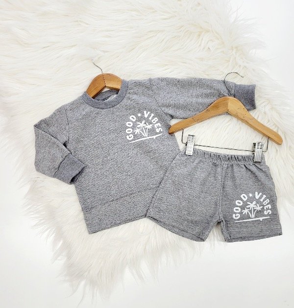 Conjunto rústico good vibes gris